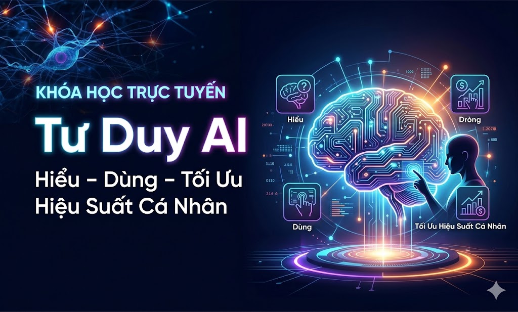 Khóa học "Tư Duy AI: Hiểu – Dùng – Tối Ưu Hiệu Suất Cá Nhân" không dừng lại ở việc dạy bạn cách "bấm nút" hay đặt vài câu lệnh đơn giản trên ChatGPT. Đây là một chương trình tái thiết lập tư duy làm việc trong kỷ nguyên số. Dựa trên mô hình 3 bước độc quyền (Hiểu bản chất – Dùng thực chiến – Tối ưu hệ thống), khóa học sẽ giúp bạn biến AI từ một công cụ giải trí thành một "trợ lý ảo" thực thụ. Bạn sẽ học cách giải phóng bản thân khỏi những tác vụ lặp đi lặp lại nhàm chán, qua đó giành lại ít nhất 2 giờ mỗi ngày để tập trung vào những công việc tạo ra giá trị cao nhất và tận hưởng cuộc sống.